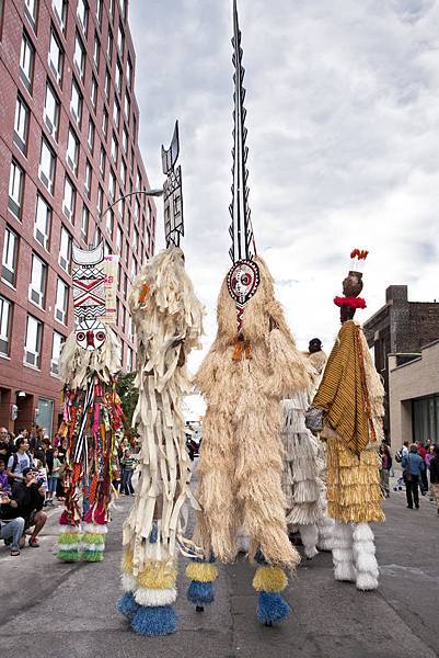 目前在布魯克林的 BRIC 美術館展示的作品包括平面攝影、影片、紡織品和雕塑,以說故事的形式透露踩高蹺者的文化背景、表演藝術與未來在紐約大小活動中的潛力,讓 Moko Jumbies 不再只是節慶的餘興節目。