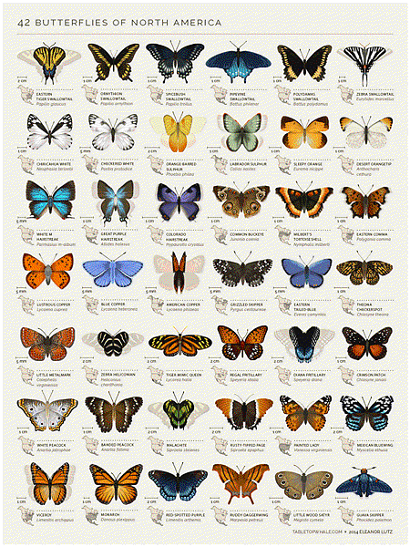 美好的動態蝴蝶 Gif 檔,認識 42 隻北美洲蝴蝶由 討喜小姐 於 日, 2014/08/31 - 4:53pm 發表 1_33.png雖然有的人真的很怕蝴蝶,但是不得不說看到蝴蝶緩緩地輕拍翅膀,在一整片花園裡飛來飛時,著實會有種活在 瓊瑤 古歐洲花園的錯覺;藝術家 Eleanor Lutz 把北美洲中的 42 種蝴蝶品種圖鑒,做成了會拍動翅膀的 gif 版本。