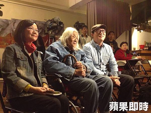 史明紀錄片「革命進行式」試映會,製作人姚文智(左起)、史明、導演陳麗貴。(記者胡舜翔攝)