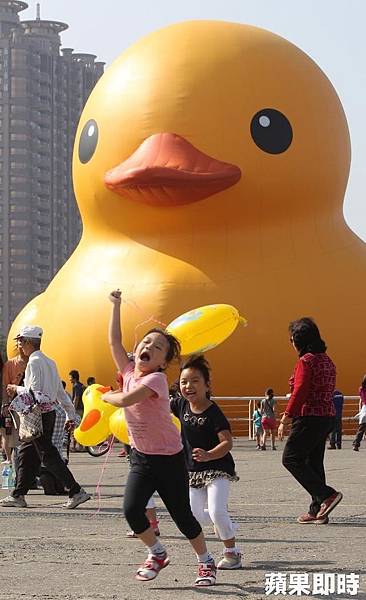 2013年中秋節於高雄光榮碼頭展出的黃色小鴨,當時造價逾百萬元,身高18公尺(世界第2大、亞洲最高),體重約1000公斤,布料由240片形狀各異的PVC塑膠布裁片縫製而成,使用布料總長 840公尺,浮台總重量約11.5公噸,為了充氣,在小鴨肚子設2部鼓風機,24小時不停送風,才能維持小鴨飽滿體態,不論是胖胖的鴨身浮在海面賞的或消風躲颱風、吹氣再現身的超cute樣態,都成功吸引大批朝聖人潮。