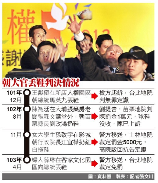 朝大官丟鞋判決情況。(圖資料照,製表:記者張文川)