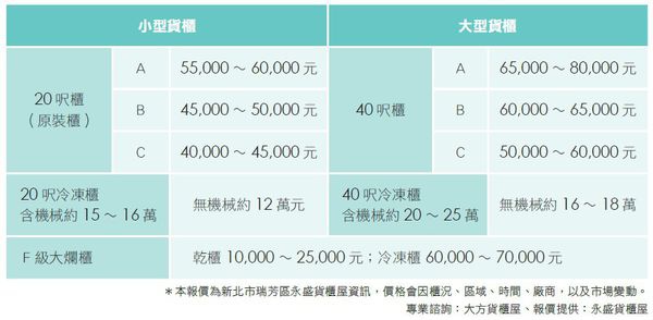 翁世柱說,貨櫃屋可用作住家、倉庫、辦公室、小套房,一般8x20呎約4.4坪的小套房最熱銷,售價12萬元,顧客再自行加四合一隔熱板、運費等,總共花不到20萬元;有不少農地上擺個貨櫃屋,內有衛浴設備,再放置床、簡單裝潢就是一處休憩處。