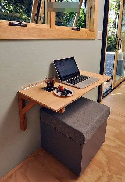 折疊式的桌子吃飯時可以當餐桌,工作時則可變身辦公桌!
