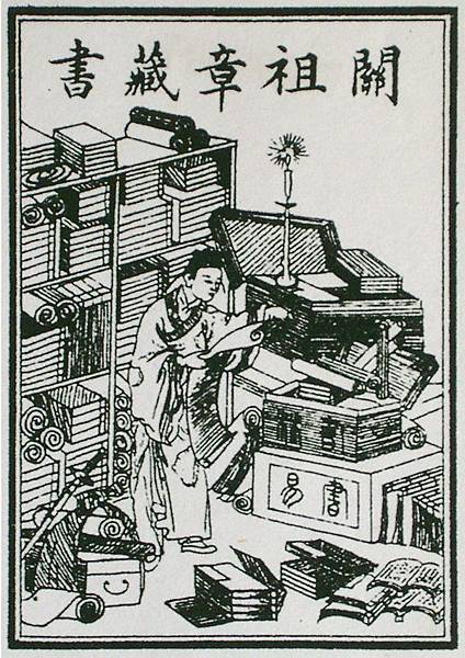 在中國,“關祖章藏書票”目前被視為中國最早的藏書票。這枚出現在1910年出版的《京張路工撮影》集中的書票,畫面描繪了一位頭戴方巾的書生在書房中翻箱倒篋、秉燭展卷的情景,極具中國古典神韻。在工致的畫面上方,有“關祖章藏書”五字,秀逸剛勁。票主關祖章,據記載畢業于美國倫斯勒工藝學院,他雖然受西方文化的影響,但深愛中國傳統文化和收藏,尤其是古鏡收藏,也被推認為是中國最早製作和使用藏書票的人。