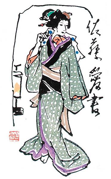 在世界藏書票中,日本藏書票因其典型的“浮世繪”風格而獨樹一幟。 浮世繪通常指日本風俗版畫,即日本江戶時代(1603~1867年)興起的一種具有獨特民族特色的繪畫藝術形式。 其內容多體現新興市民的思想感情,表現民間的日常生活和情趣,題材十分廣泛:社會時事、民間傳說、歷史掌故、戲曲場景、古典名著、戰爭事件或山川景物等無所不包,被譽為日本的“百科全書”。 藝術風格上,浮世繪追求線條簡練,色彩瑰麗神秘,充滿意趣和想像之美。 其人物造型誇張艷麗,具有典型的東方神韻。 雕刻不追求木刻刀味,強調的是木質紋理的表現效果,將線條流暢放在最主要位置。 一幅好的作品需要畫、刻、印三者水乳交融,才能達到盡善盡美的效果。