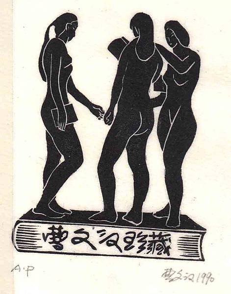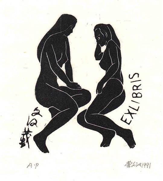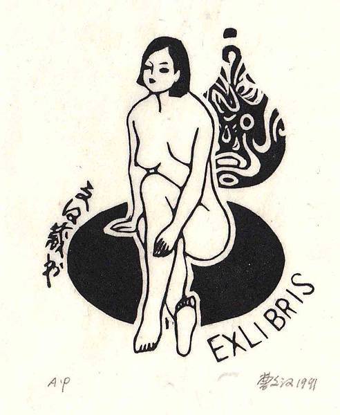 因文化背景不同,審美存在差異,不同國家即使同一題材藏書票的藝術風格也迥然有異。 例如,以“裸女”藏書票為例,歐美創作者通常喜歡以鋼筆勾勒,講究形體的惟妙惟肖,情趣生動,呈現自然之美;而亞洲藏書票則喜用誇張變形之手法,凸顯女性豐腴體態,花紋華麗,構圖嚴謹,追求濃厚的裝飾之美。