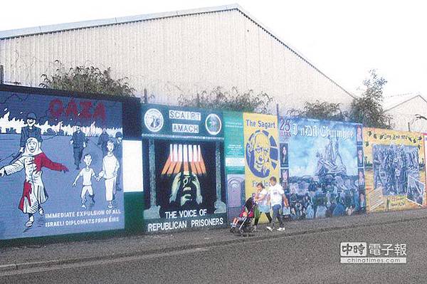 曾是沉痛的傷痕記憶,政治壁畫今已成北愛觀光景點。(江靜玲攝)