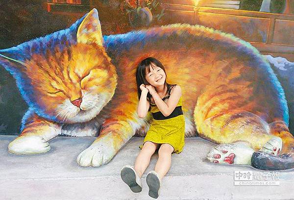 《屋頂上的貓》彩繪爆紅,為了讓遊客耳目一新,社區理事長蘇坤福又推出新作,從俏皮改走溫馨路線,將貓公園內另面水泥牆彩繪出1隻伏首睡覺的貓,寬大柔軟的胸懷,令人忍不住想投入牠溫暖懷抱,蜷縮著身子,與牠同入夢鄉。