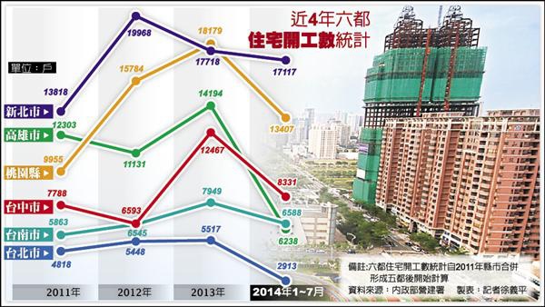 近4年六都住宅開工數統計(資料來源:內政部營建署,製表:記者徐義平)