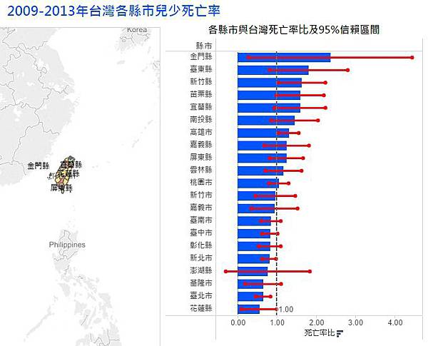 2009-2013台灣各縣市兒少死亡率 - Robert Lu | Tableau Public - https://goo.gl/3BJQ0h