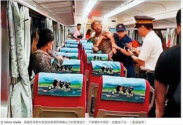 勇警李承翰在自強號車廂與揮舞尖刀的鄭嫌扭打,不幸遭刺中腹部,送醫後不治。(翻攝畫面)鐵路警李承翰殉職案二審逆轉 凶嫌無罪變改判17年、強制監護5年 https://bit.ly/2PabOmN