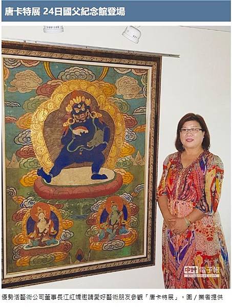 優勢活國際藝術公司董事長江紅嬌表示,「千古的傳奇藝術-唐卡特展」是「老唐卡文化藝術」巡迴展的一環,唐卡(藏語)是藏傳佛教修持以及傳播的法門之一,畫在布帛之上的神佛,在方寸間蘊涵佛教的義理。諸神佛的形象、姿態、手印甚至法器,都有佛經上的依據,唐卡畫師必須遵守這些規範。唐卡如同一座「可移動的寺院」,在宗教文明所構成的神聖路線上流動。通過畫師繪製的唐卡,使佛教義理得以深化於帳篷與村落、寺院與家戶、僧伽與世俗之間。