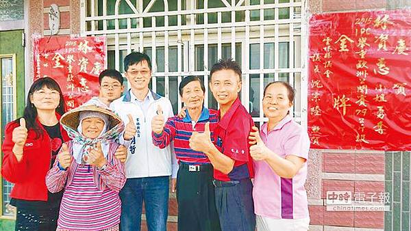 羽球健將縣議員李明哲2個月來已為崙背鄉2名女將張貼3張金牌紅榜,前兩張為許淑淨在全運會、世錦賽的金牌,1日再到舊庄村向林資惠爸爸、媽媽致賀貼紅紙。