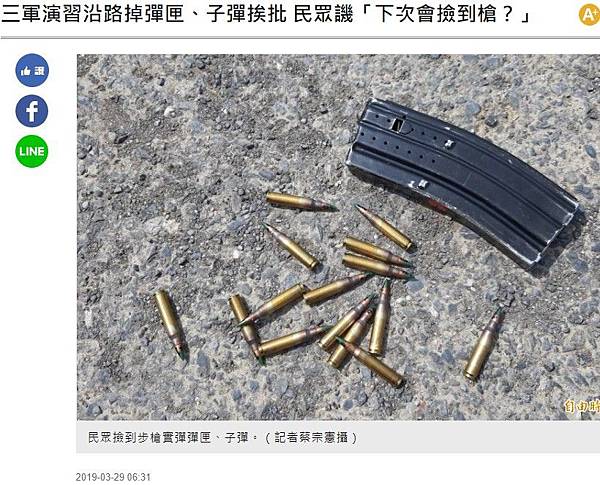 三軍演習沿路掉彈匣、子彈挨批 民眾譏「下次會撿到槍?」 - 政治 - 自由時報電子報 - https://goo.gl/Urvktb