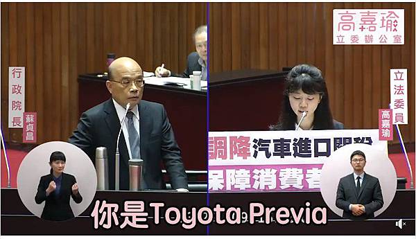今天院會總質詢,嘉瑜再度就汽車關稅是否調降的議題,質詢經濟部沈榮津部長,呼籲經濟部重新檢討我國設置高汽車關稅的必要性。沈部長今天也承諾,汽車關稅的調降會在合理時間重新檢討,嘉瑜會密切關注經濟部、財政部的後續回應,持續推動降低汽車關稅、貨物稅的政見:
