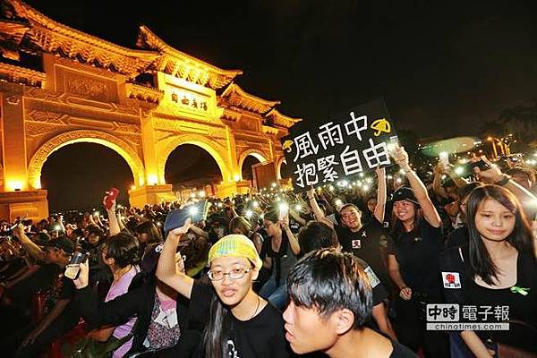 黃國昌也說,「馬英九嘴巴上雖說支持香港爭取普選,卻還是不斷想要求見習近平,甚至不惜配合中共統戰,企圖開放中國來台灣設立辦事處」,他堅決反對馬的傾中政策,也號召群眾在今晚6點,帶著雨傘到自由廣場,撐民主、撐香港、也撐台灣,對抗中共,以及各自的軟弱政府。