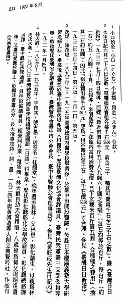 1922年7月台灣米價,每百斤=每石,5.8圓