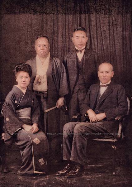 照片後排左–外曾祖父李雲盛、後排右–叔曾祖父姜振驤、前排右–媒酌人山田久次郎