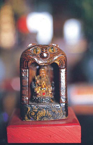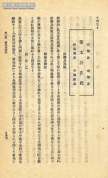 「封神榜」中姜子牙騎四不像到北海途中,遭遇一隻怪物,其形駱駝頭、鵝脖頸、蝦鬍子、牛耳朵、魚身子、鷹爪子、一條獨腿、腳生虎爪,雙手發石打人,龍鬚如同驟雨,阻攔其前進。該怪物本要食其肉,反被姜子牙用杏黃旗收服,所以部份風水師即用「姜太公在此」刻石制煞,即風水訣中「遮、擋、攔、化」之「化」字訣。 (施翠峰撰)