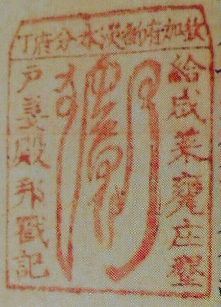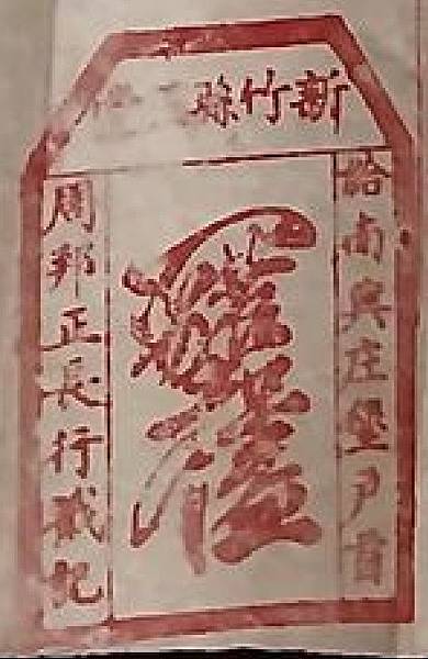 印記:「新竹縣正堂給竹北一保南興庄閩粵總墾戶金廣福長行戳記」。