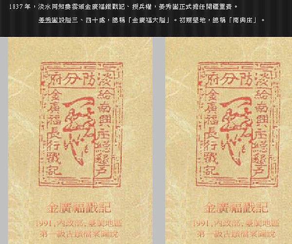 「金廣福大隘」自道光15年(1835年)創立至光緒12年(1886年)劉銘傳實施裁隘政策為止,共傳四任粵籍墾戶首、三任閩籍墾戶首,經歷52年。