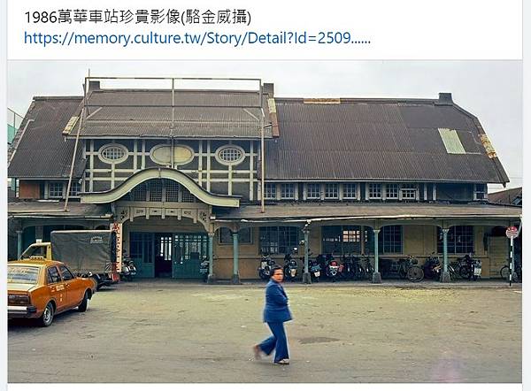 照片捕捉到的貨車、計程車、機車,是當時萬華車站的日常。當地人說萬華車站、鐵路帶動經濟龍脈,附近工廠、居住、商業密集,現今台北市萬華區的發展,從清朝依淡水河水運河港而興,進入鐵路、公路陸運四通八達的年代,萬華車站是轉變關鍵。西元1986年(民75)萬華車站前站-文化部國家文化記憶庫 https://bit.ly/3MAixRa