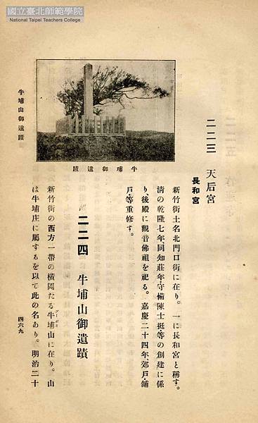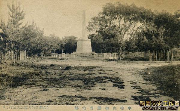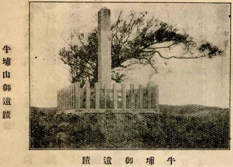 本圖出自《新竹市大觀》,第二頁。照片為牛埔山御露營地之牛埔山紀念碑,今已不存。