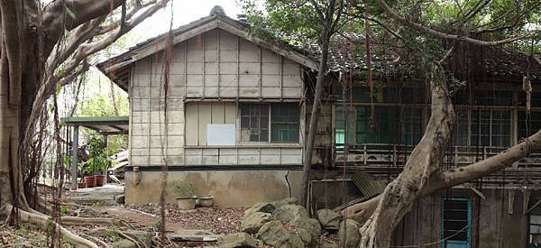 自成德國中門口遠眺 ,而左前方樹木叢生處為靖廬所在地 ;