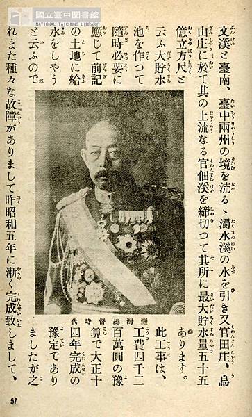 僅一年三個月,卻對台灣產業發展的基礎建設不遺餘力:設立日月潭水力發電事業及台灣電力株式會社、推動灌溉給水系統,讓嘉南平原成為穀倉、著手興建基隆至高雄縱貫道路等。