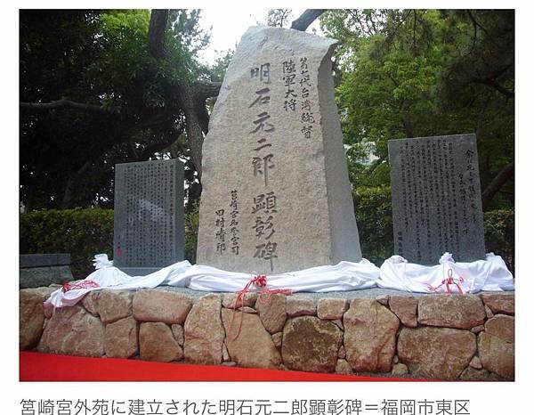 4月23日,在日本福岡縣福岡市東區的筥崎宮外苑前,舉行了第七任台灣總督明石元二郎(1864-1919)的紀念碑揭幕儀式。