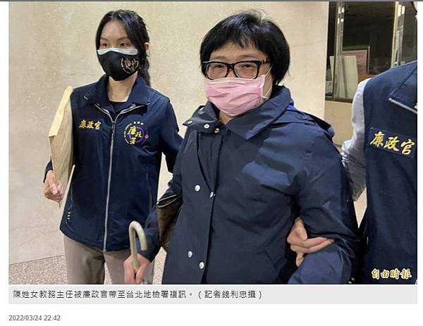 陳姓女教務主任被廉政官帶至台北地檢署複訊。(記者錢利忠攝)