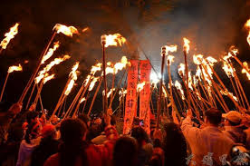若勉強探究火把節之由來,筆者認為源出於日治時期瑞芳各地神社秋冬季節所舉辦之「祈願消災火祭」。按日治初期,日人開墾礦山飽受山野瘴癘之害,水土不服而病歿者難計其數,所以日人引進神道信仰,在金瓜石、猴硐、內瑞芳三地設置神社,由日本政府派任神官執掌。「火祭」分別於每年一月(瑞芳神社)及八月份(金瓜石神社、猴硐神社)舉行,由神官與地方首長頭人等帶領鄉親祭神,夜晚時再供奉神火巡禮,民眾聚集在神社鳥居廣場前高舉火把祈願平安,部份村莊內街道路口也會堆積大量火把點燃,家家戶戶大人小孩也會拿著火把,藉火把燒光地方災厄瘟疫。故今日瑞芳各地流行舉辦提燈籠舉火把活動,實屬日治神社遺風舊俗。