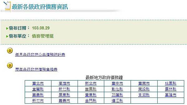 根據財主單位資料,去年底各級政府債務負擔(包括公共債務法規範的債務、短期債務及非營業基金舉債等)約七兆元,若加計潛藏債務十七.一四兆元,去年底政府總負債已達二十四.一八兆元,換算平均每位國民背債一○三萬元。