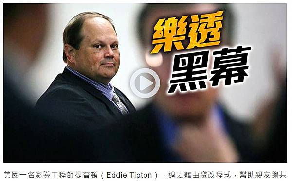 美國一名彩券工程師提普頓(Eddie Tipton),過去藉由竄改程式,幫助親友總共獲得約2400萬美元(約6.7億元台幣)的樂透獎金,他4年前認罪後被判刑25年,並需賠償中獎金額,然而如今他透過監獄遞交文件對愛荷華州提告,表示自己根本是無辜的,當年是被迫認罪。