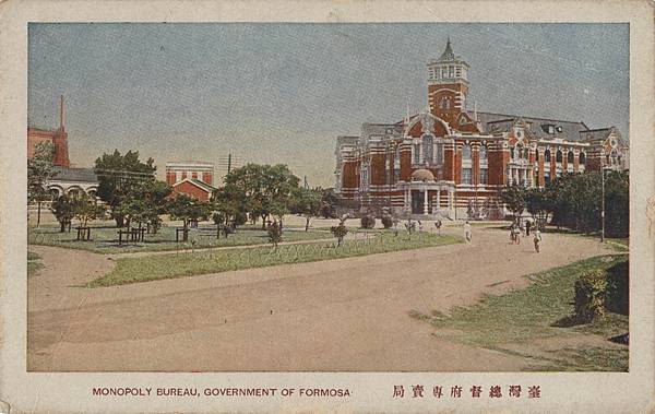 臺灣總督府專賣局,外觀上看來是文藝復興式的紅磚建築,彩票局創建初期就隱身在這棟大樓中(Source: 國立臺灣歷史博物館,館藏號2001.008.0171)