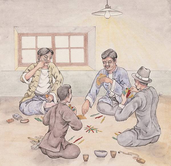 黃金田繪《玩四色牌》