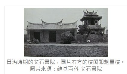 日治時期的文石書院,圖片右方的樓閣即魁星樓