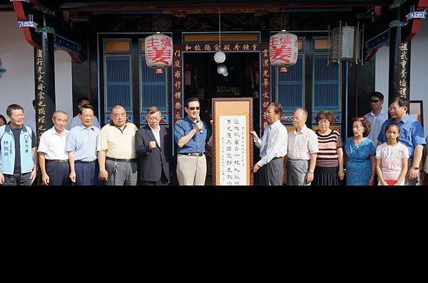 【本報訊】中秋佳節前夕,總統馬英九9/26日下午,由客家委員會副主任委員鍾萬梅陪同,參訪新竹縣北埔地方文化館「祭念抗日英雄姜紹祖成仁120周年經典影像特展」,隨後前往天水堂拜會姜氏家族,除共同緬懷乙未客家抗日的英勇事蹟外,更特別延請書法名家抄錄姜紹祖烈士的自輓詩致贈遺族,標彰其成仁之浩然正氣。