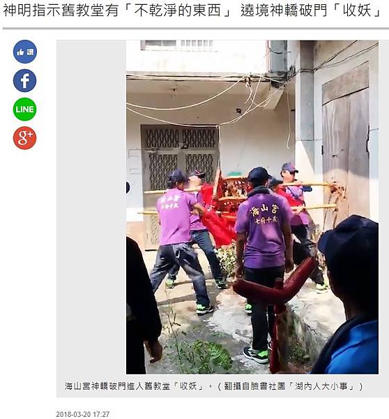 分享神明指示舊教堂有「不乾淨的東西」 遶境神轎破門「收妖」到Facebook 分享神明指示舊教堂有「不乾淨的東西」 遶境神轎破門「收妖」到Line 分享神明指示舊教堂有「不乾淨的東西」 遶境神轎破門「收妖」到Google+
