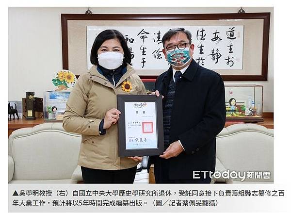 ▲吳學明教授(右)自國立中央大學歷史學研究所退休,受託同意接下負責籌組縣志纂修之百年大業工作,預計將以5年時間完成編纂出版。(圖/記者蔡佩旻翻攝)