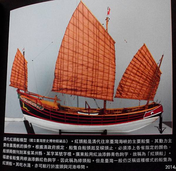 昔日淡水河上航行著一種木造貨船俗稱為「紅頭仔」,底平、無龍骨,只有「船拱」(橫骨之稱),乃是典型的河川船。這種「紅頭仔」,長約十二公尺,寬約四公尺,高約一公尺半,重約十五公噸,裝載量約可達十二公噸。因為船首左右雕有一雙凸出的眼睛,其周圍塗以紅色格外顯眼,故稱為紅頭船。它具有桅、帆、擢、竹竿等,可以自航。