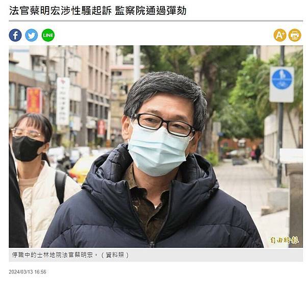 法官蔡明宏涉性騷起訴 監察院通過彈劾 - 政治 - 自由時報電子報