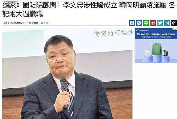 獨家》國防院醜聞!李文忠涉性騷成立 韓岡明霸凌施壓 各記兩大過撤職 - 政治 - 中時新聞網 https://bit.ly/4cNghlY