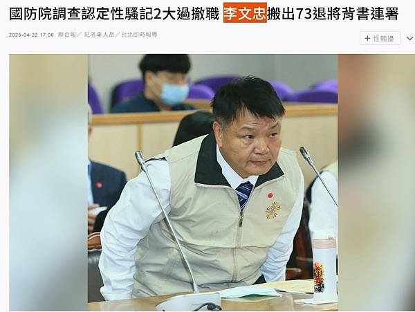 國防院調查認定性騷記2大過撤職 李文忠搬出73退將背書連署 | 軍事 | 要聞 | 聯合新聞網 https://bit.ly/4jnZJn8