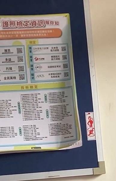 桃園市龍潭高中學生在Threads上發文投訴,男同學有言語霸凌、性騷行為,圖為男生在教室佈告欄畫歧視性別符號。(取自Threads)