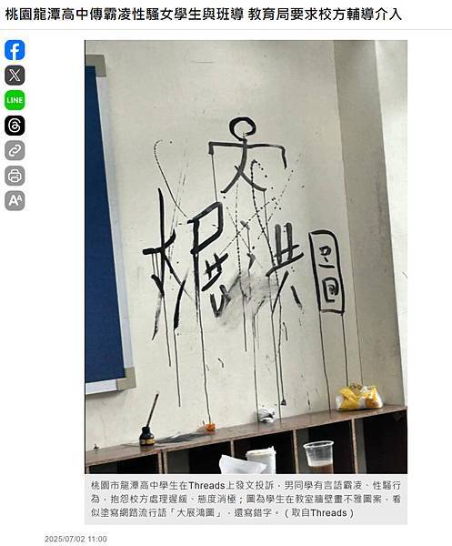 桃園龍潭高中傳霸凌性騷女學生與班導 教育局要求校方輔導介入 - 社會 - 自由時報電子報 https://bit.ly/3TkOHn9