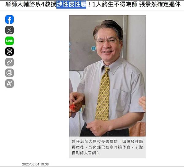 彰師大輔諮系4教授涉性侵性騷!1人終生不得為師 張景然確定退休 - 生活 - 自由時報電子報