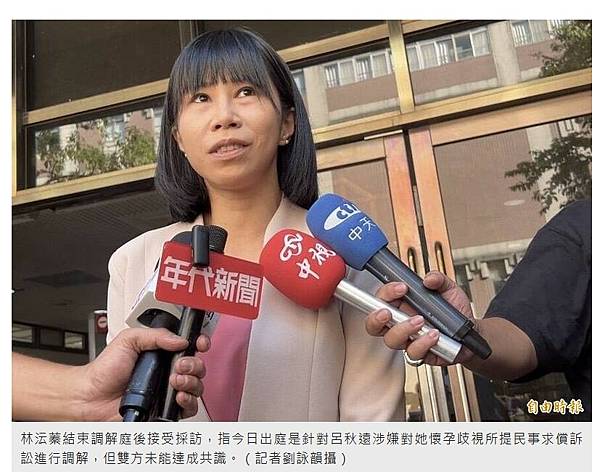 林沄蓁結束調解庭後接受採訪,指今日出庭是針對呂秋遠涉嫌對她懷孕歧視所提民事求償訴訟進行調解,但雙方未能達成共識,法院定於11月中旬再度開庭審理。
