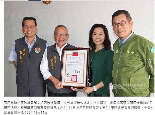 苗栗縣議員謝文禓解職、許櫻萍遞補 縣長頒當選證書 | 桃竹苗 | 地方 | 聯合新聞網 http://bit.ly/37dyPK2
