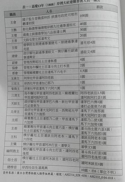 日治以來新屋鄉前二大家族-葉家與姜(范姜)家,經理以上皆具名公號八位,客家義民信仰代表地方庄頭、家族展現出的凝聚力量,姜家還有加油空間。